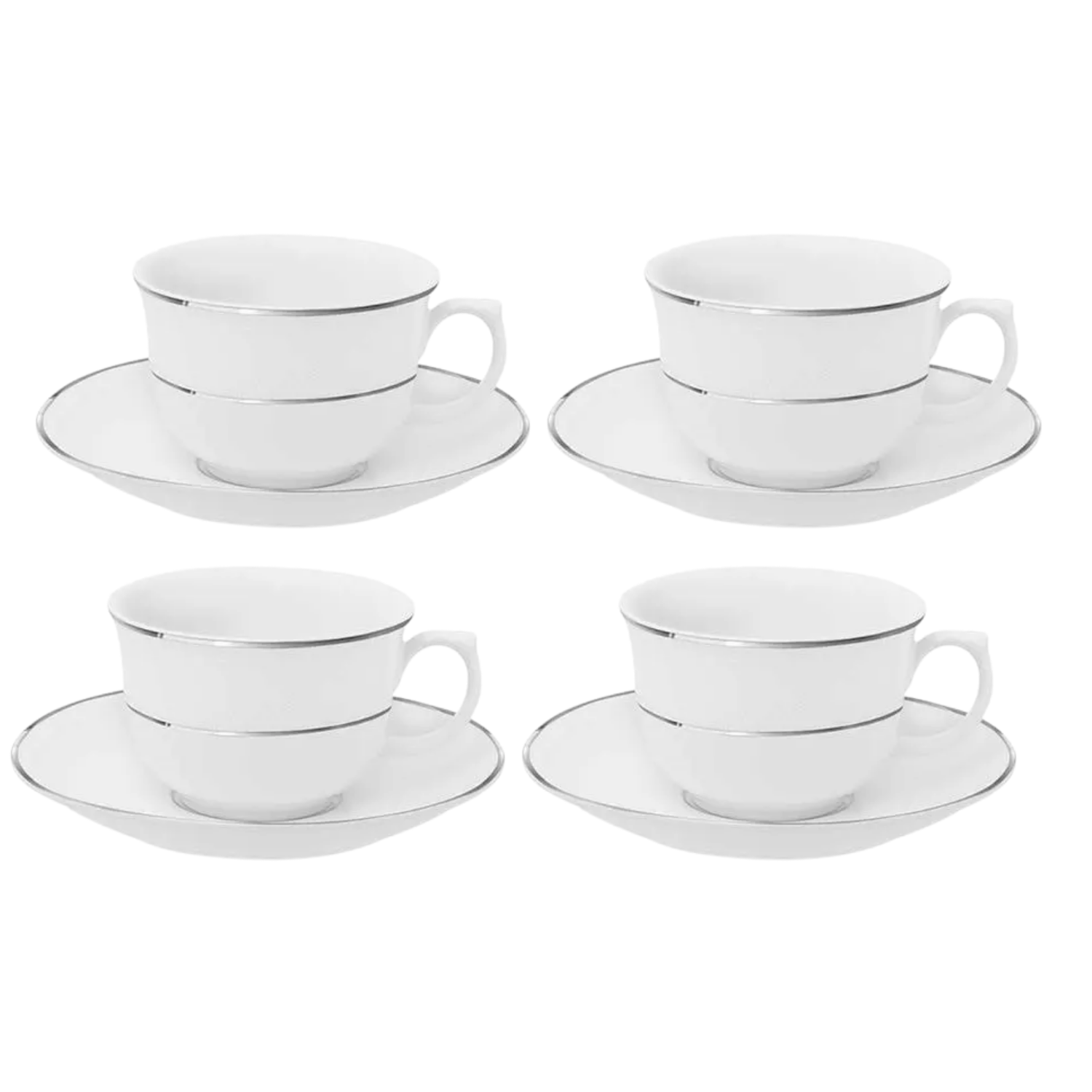 Kit 4 Xícaras de Chá com Pires Oxford Diamond 240 ml – Porcelana de Alta Qualidade