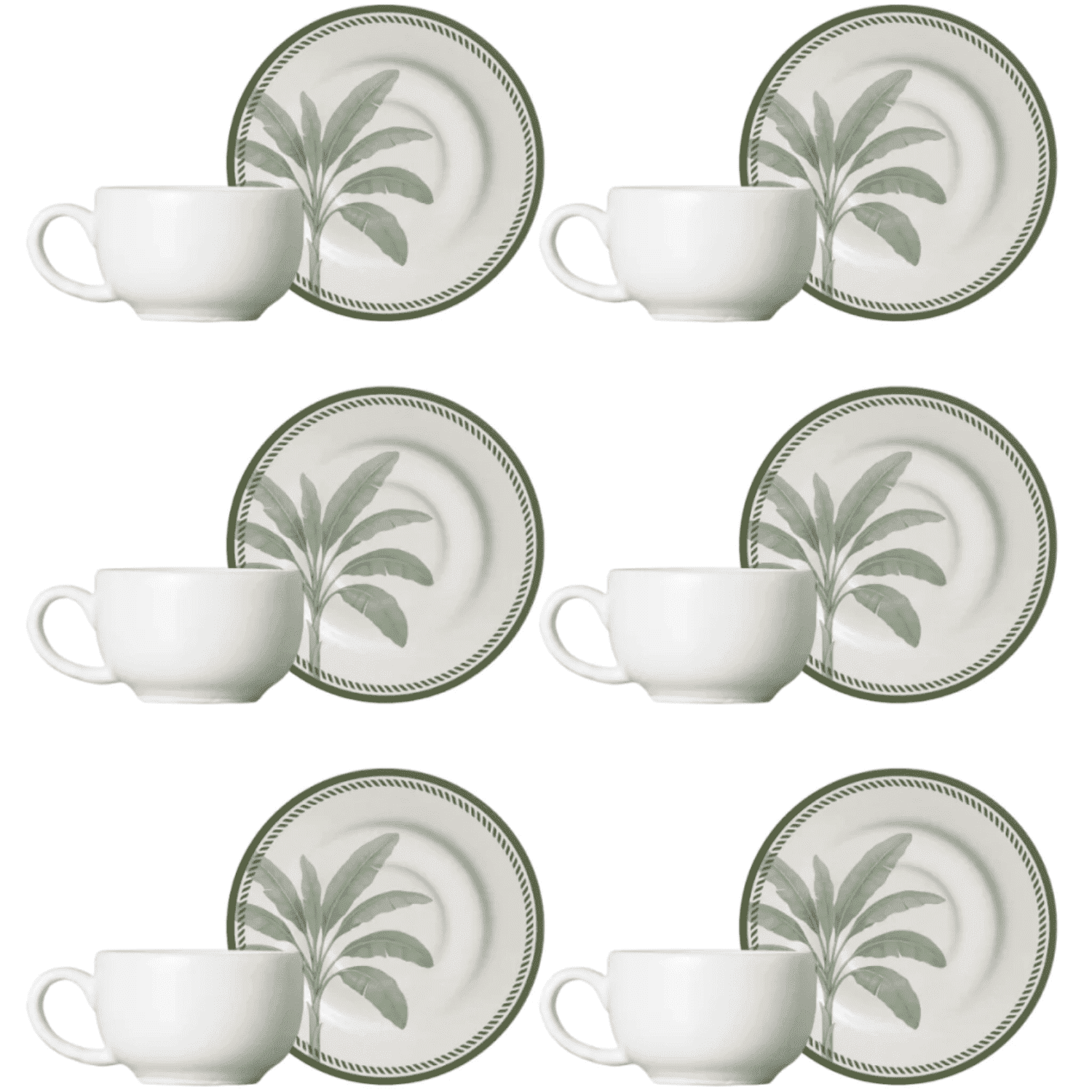 Cada xícara, com capacidade de 250 ml, acompanha um pires com acabamento acetinado, formando um conjunto harmonioso que valoriza qualquer mesa posta — seja no dia a dia ou em ocasiões especiais.