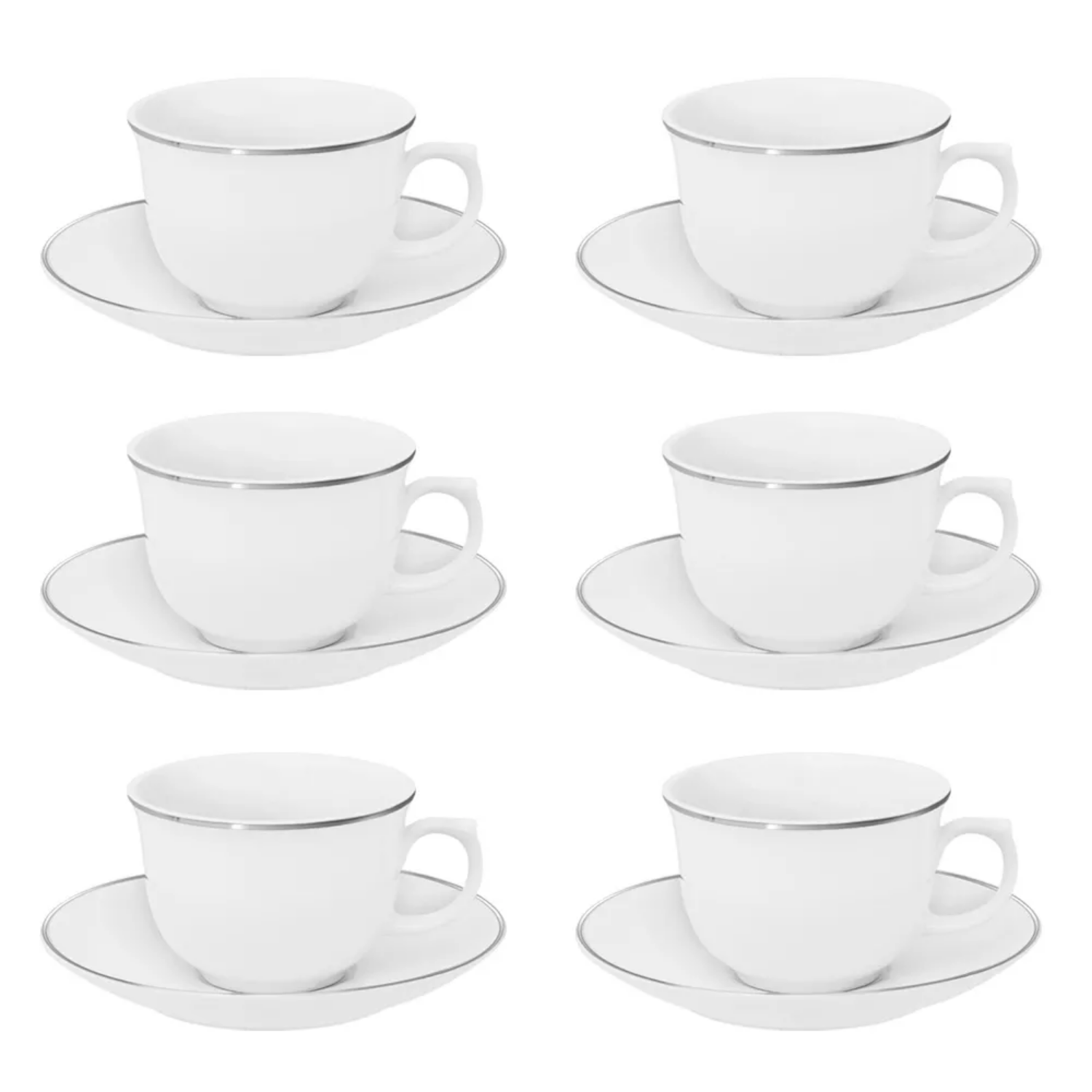 Kit 6 Xícaras de Chá com Pires 240ml Oxford Isabel Prata