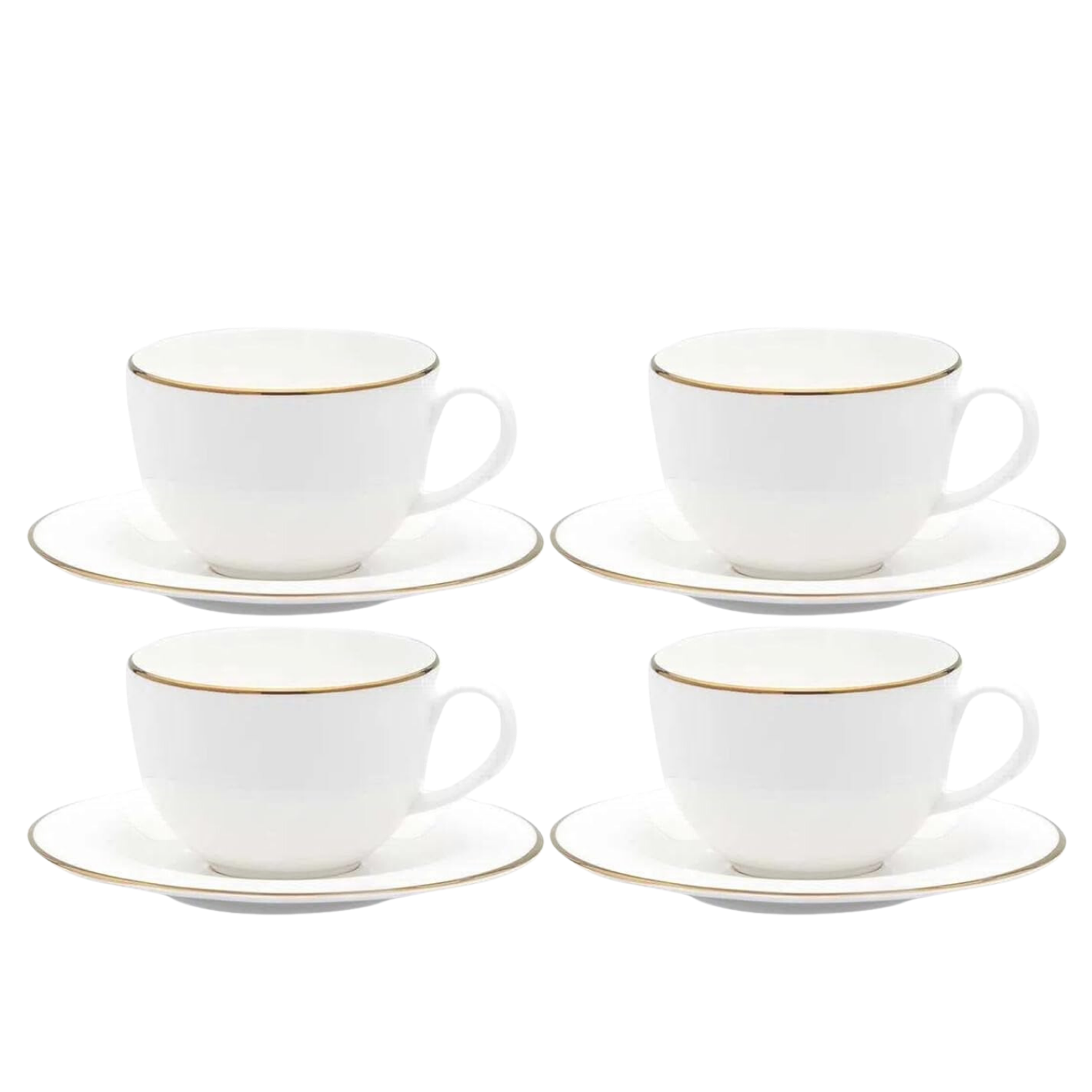 Este conjunto é confeccionado em porcelana importada de qualidade superior. Cada peça é lisa e elegante, sem detalhes desnecessários, destacando a beleza da porcelana em si. Além disso, as bordas são adornadas com um delicado filete prateado/DOURADO, adicionando um toque de requinte ao conjunto.