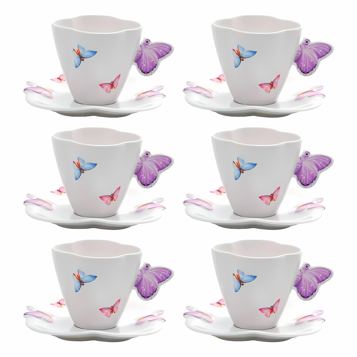 Descubra a magia de receber com o Conjunto 6 Xícaras de Chá de Porcelana com Pires Borboletas Wolff.