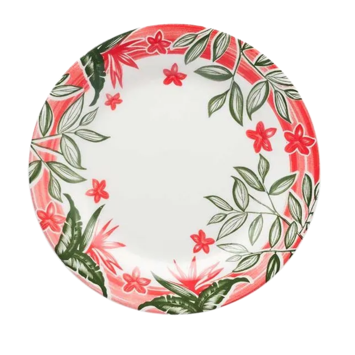 Este prato faz parte da linha Donna Jardim Tropical da Oxford, uma coleção que celebra a beleza das estampas tropicais com qualidade superior e design atemporal.